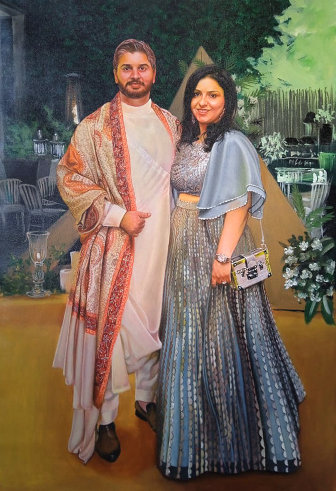 We have an excellent team of highly skilled oil as well as acrylic portrait artists in India who will hand paint highly realistic portraits from your favorite photos. These canvas masterpieces will leave everyone spellbound! Your hand painted pictures from photos will be crafted entirely by hand at the Majestic Arts studio. Our artists give the highest level of attention to capture the tiniest of details in your photograph, ensuring that your hand painted pictures from photos are nothing short of true masterpieces.